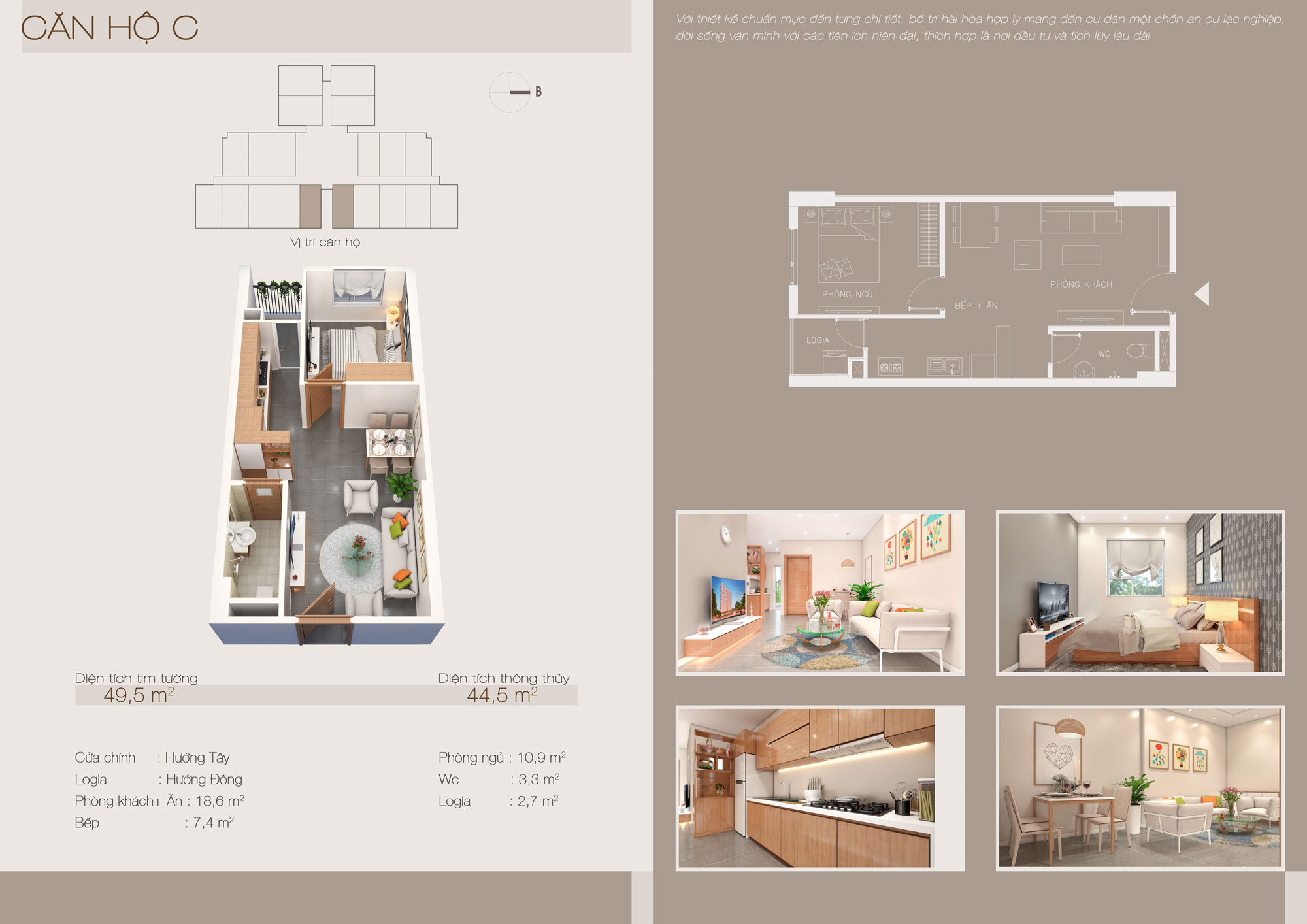 - Căn hộ loại C: diện tích 45,6 m² (1PN – 1WC).