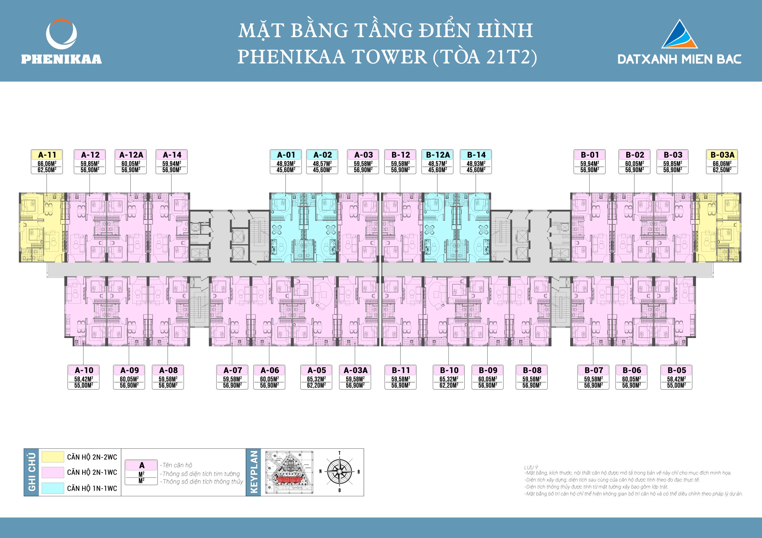 – 2PN – 1WC: 55 – 62,2m² (440 căn).